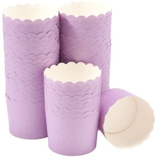 מאפינס נייר צגיע בצבעים שונים כתום, צהוב, סגול לילך (בהיר)