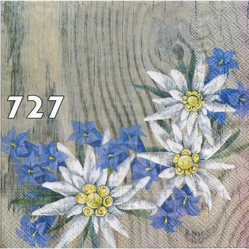 מפית מדוגמת פרחים בצבע כחול וכסוף 3 שכבות