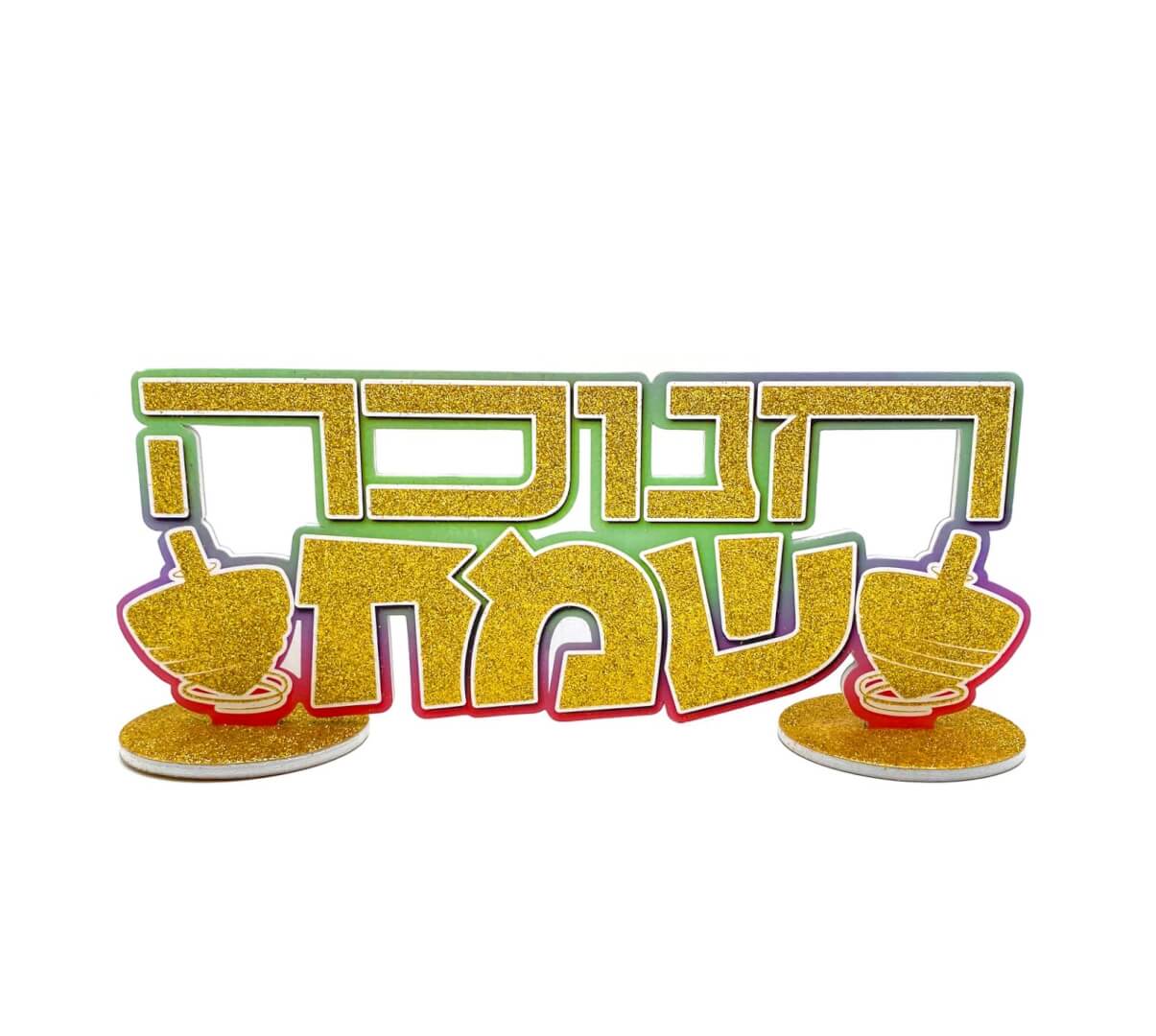 לפאר את השולחן במרכז שולחן חנוכה שמח אותיות נצנץ אורך 30 ס"מ גובה 13
