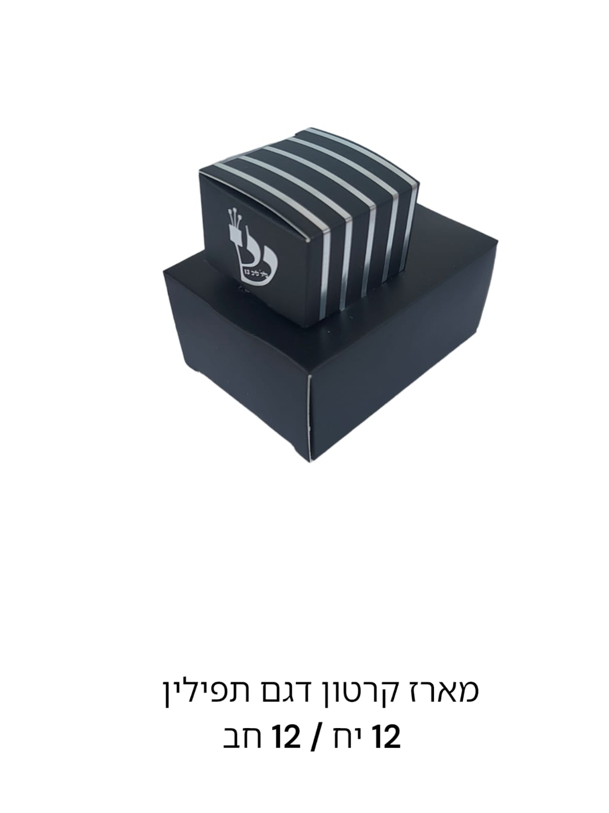 מארז קרטון בצורת תפילין מיועד לפאר את השולחן בבר מצווה גודל 4*4*2.5 מארז של 12