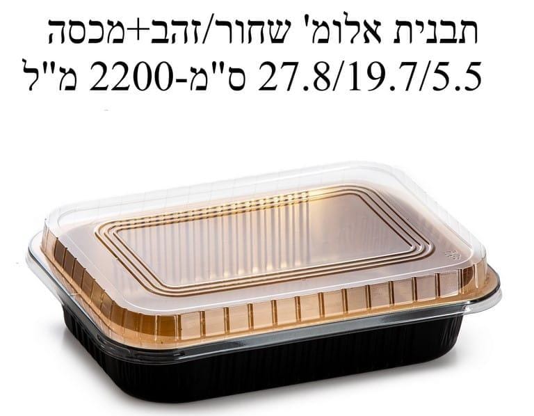 תבנית שחור זהב עם מכסה נוחה לאפיה גודל 27.8*19.7 גובה 5.5 מכיל 2200